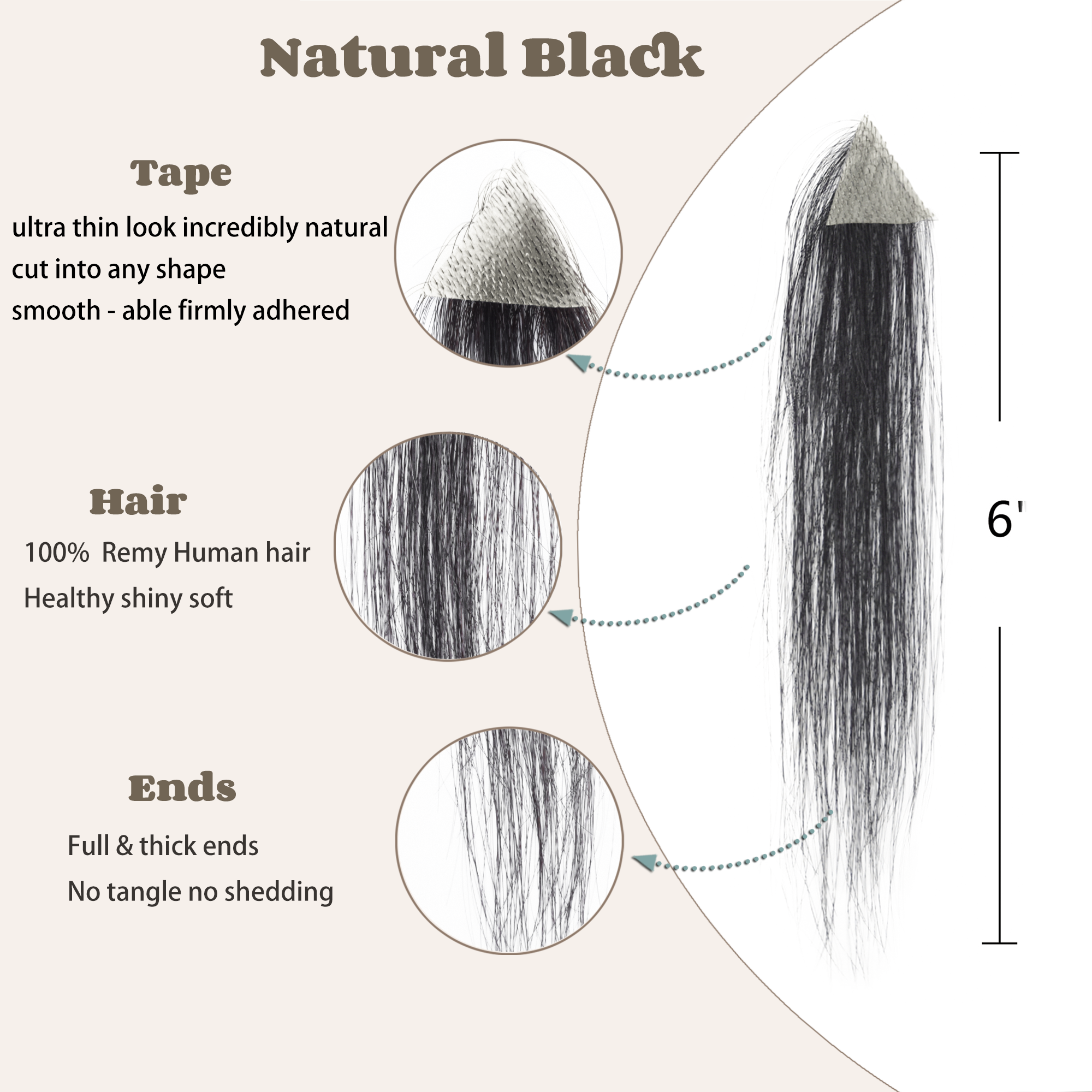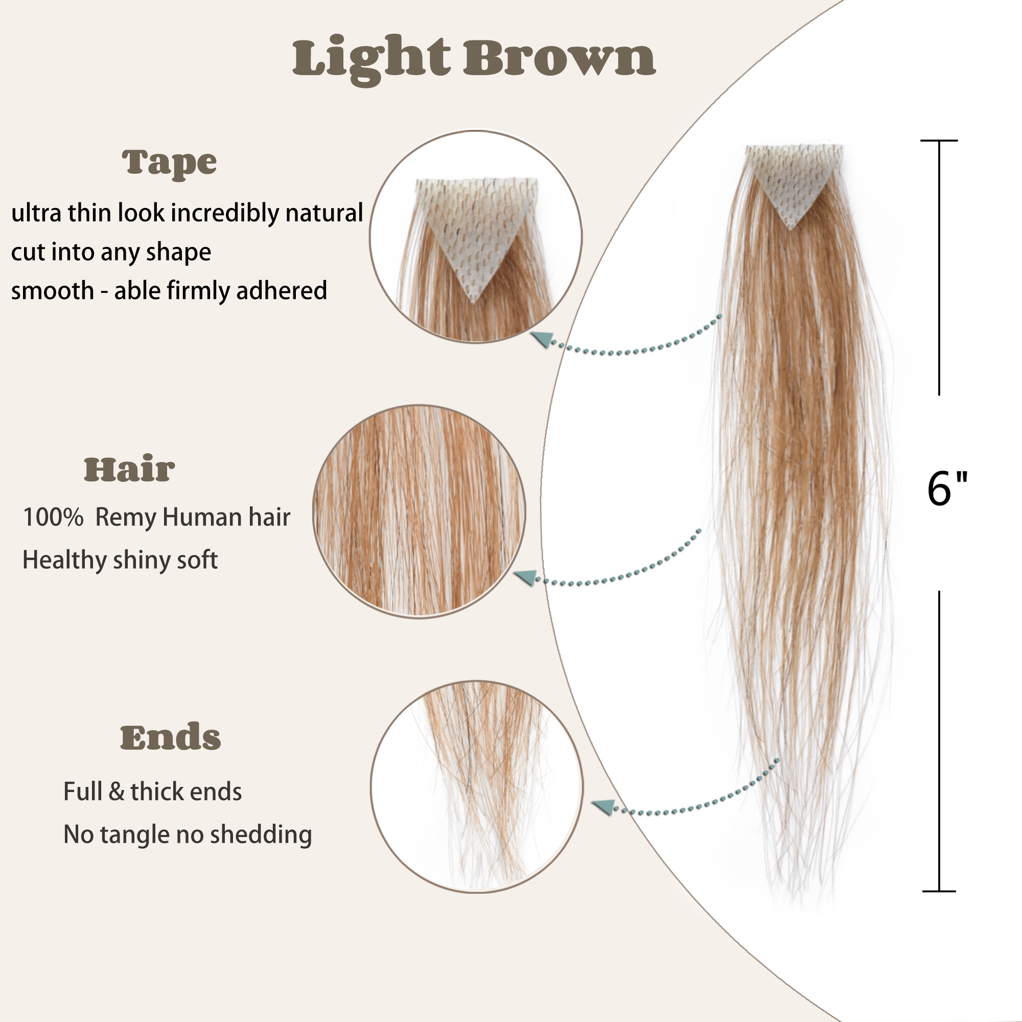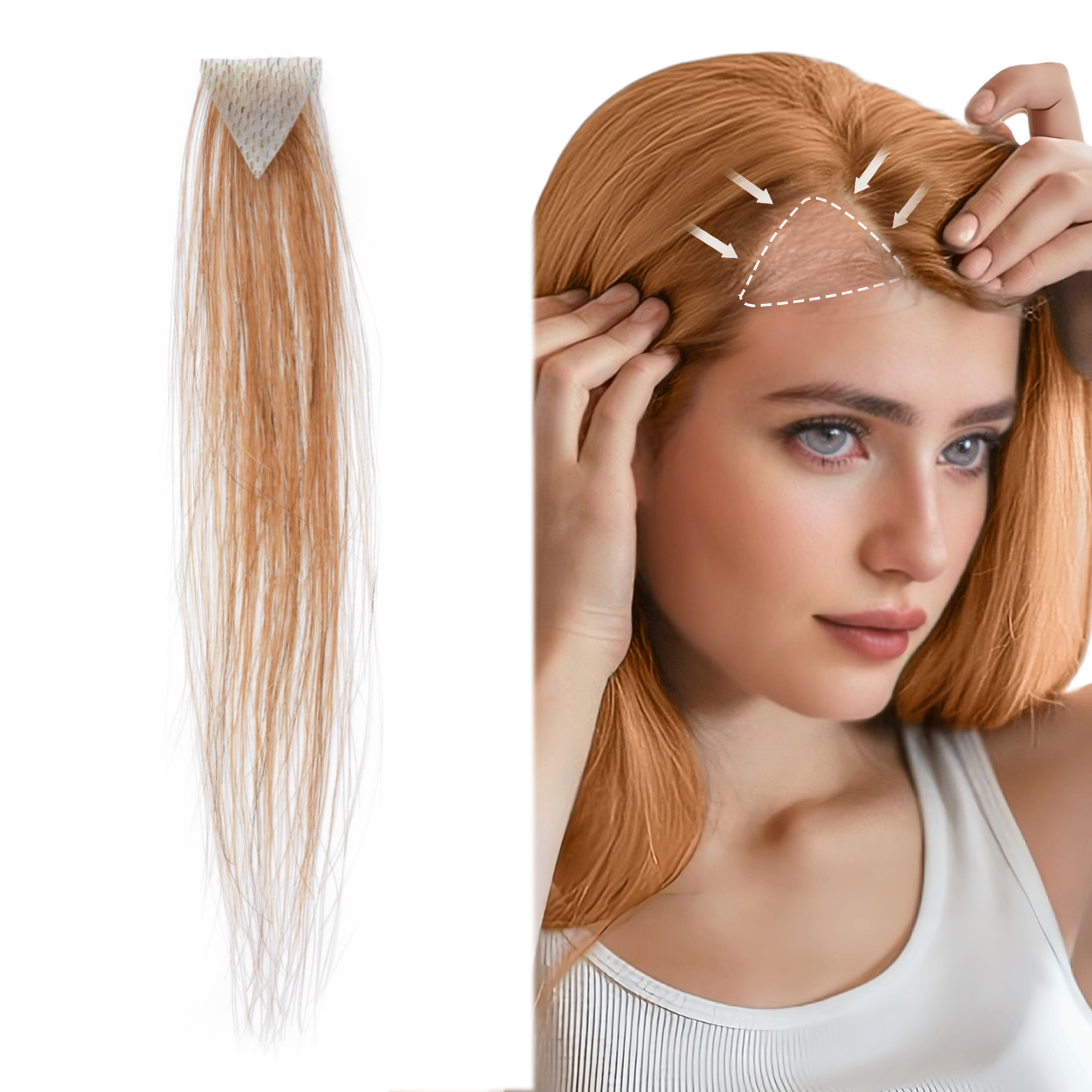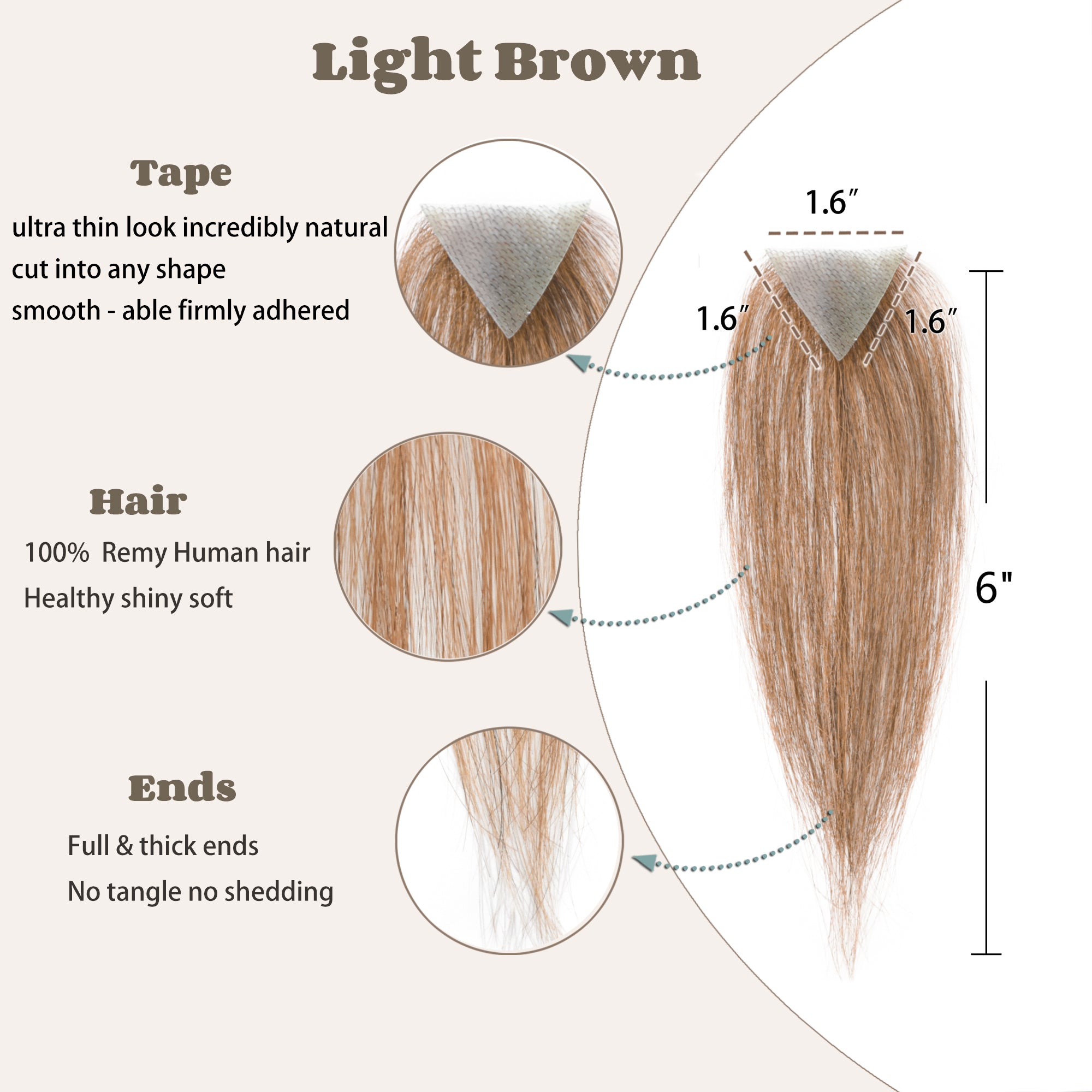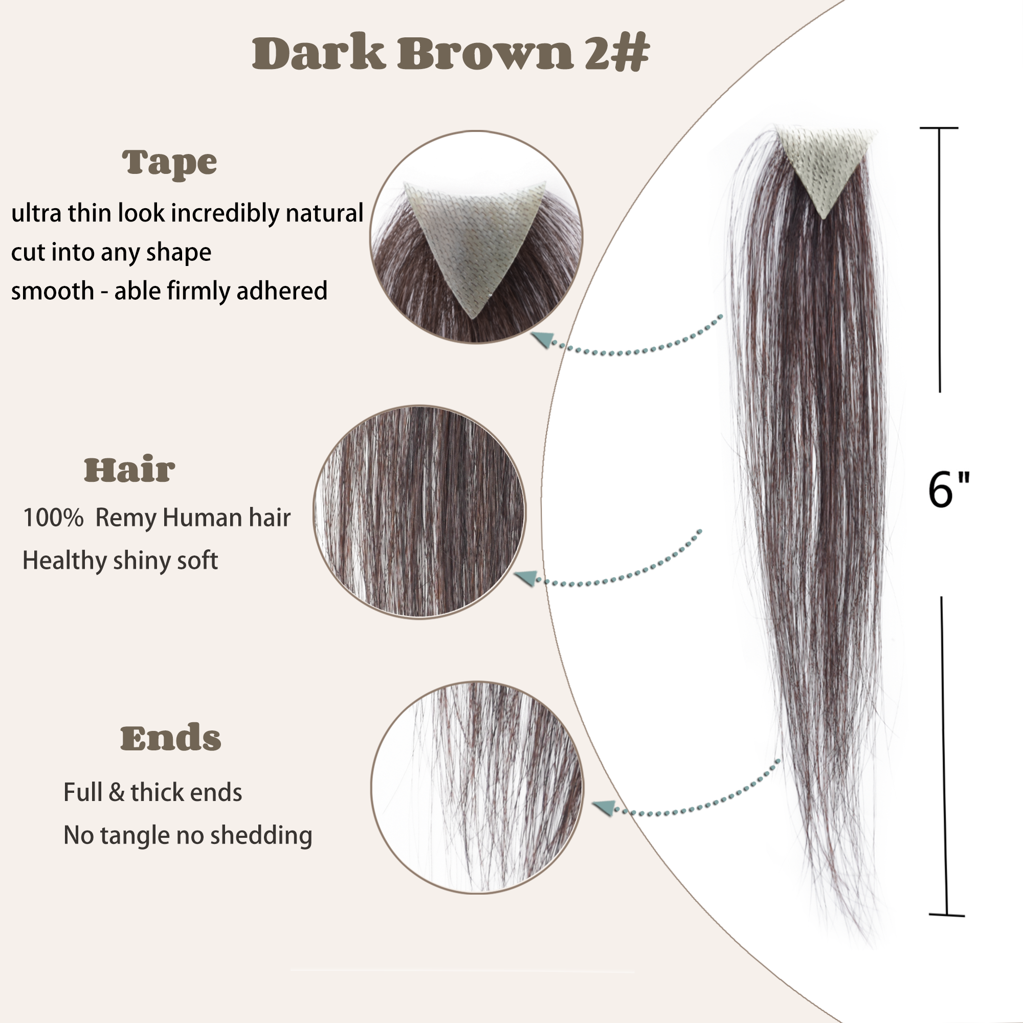 Size : Base about 1"*1"*1", about 1.6"X1.6"X1.6". hair Long 6 inches. Five Colors: Natural black, Dark Brown, Medium Brown, Light Brown, Copper Red. Hair material type: remy virgin hair,100% human hair, natural and shedding free. How to wear it: choose the right size for your forehead and cut it out. Clean the scalp , tape in on the hairpiece. The male frontal hairpiece is specifically designed for people who have hair loss only at the front hairline, which is also commonly called a receding hairline, and still have healthy hair elsewhere on the head. With this product, people have no need to shave their heads to wear this piece; the only requirement is to bond this piece at the front hairline. It is very important to have a hairstylist blend the frontal hairpiece hair with people's existing hair. This will lead to a much more natural and professional looking result.